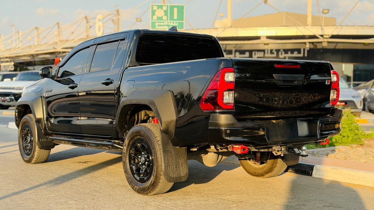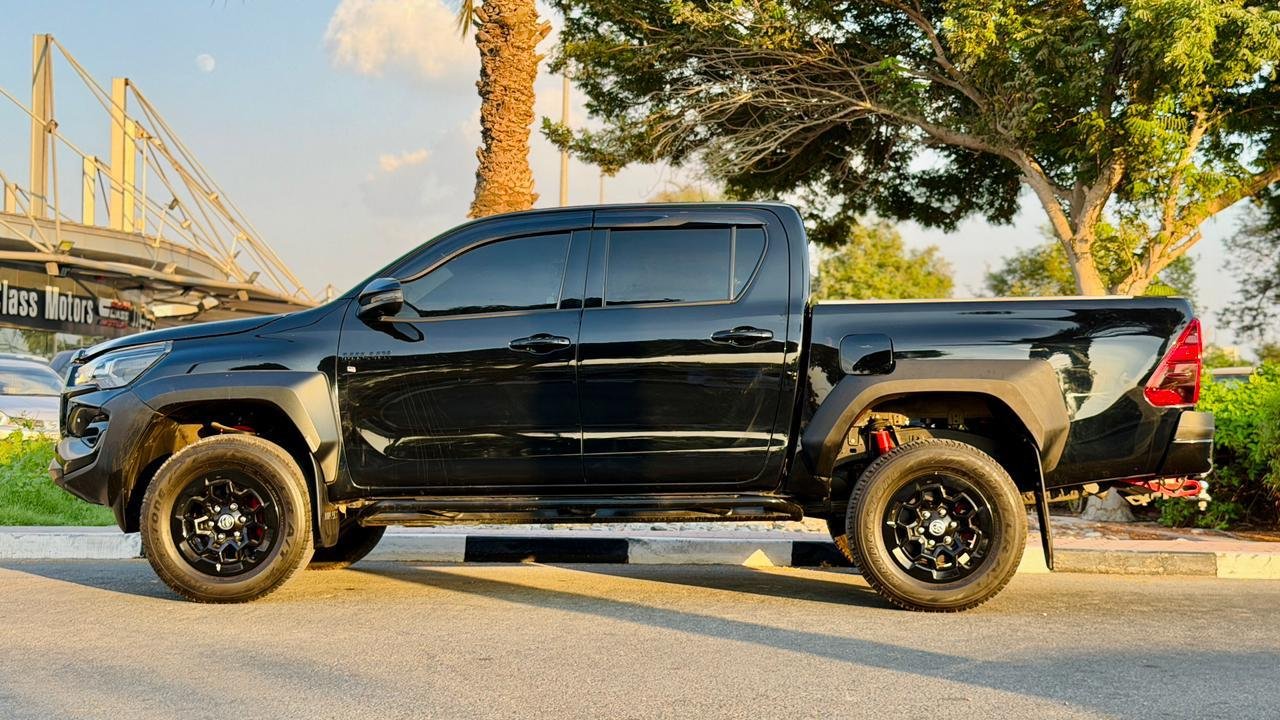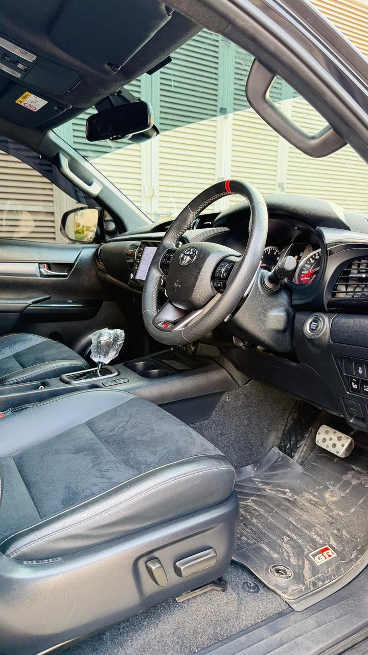 The 2024 Toyota Hilux Revo GR Sports Double Cabin is a high-performance pickup that blends style, durability, and off-road capability. Powered by a 2.8L Diesel Engine with a 6-speed automatic transmission, it delivers strong torque, smooth driving, and superior fuel efficiency for both urban and rugged terrains.